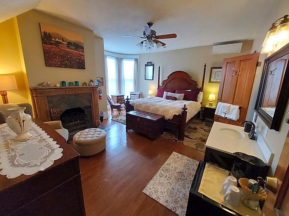 The fireplace is a top feature of this double room. The spacious double room has a private bathroom, air conditioning, a tea and coffee maker, as well as a seating area with a flat-screen TV. This double room features heating, TV, city views, as well as chocolate for guests. The unit has 1 bed.